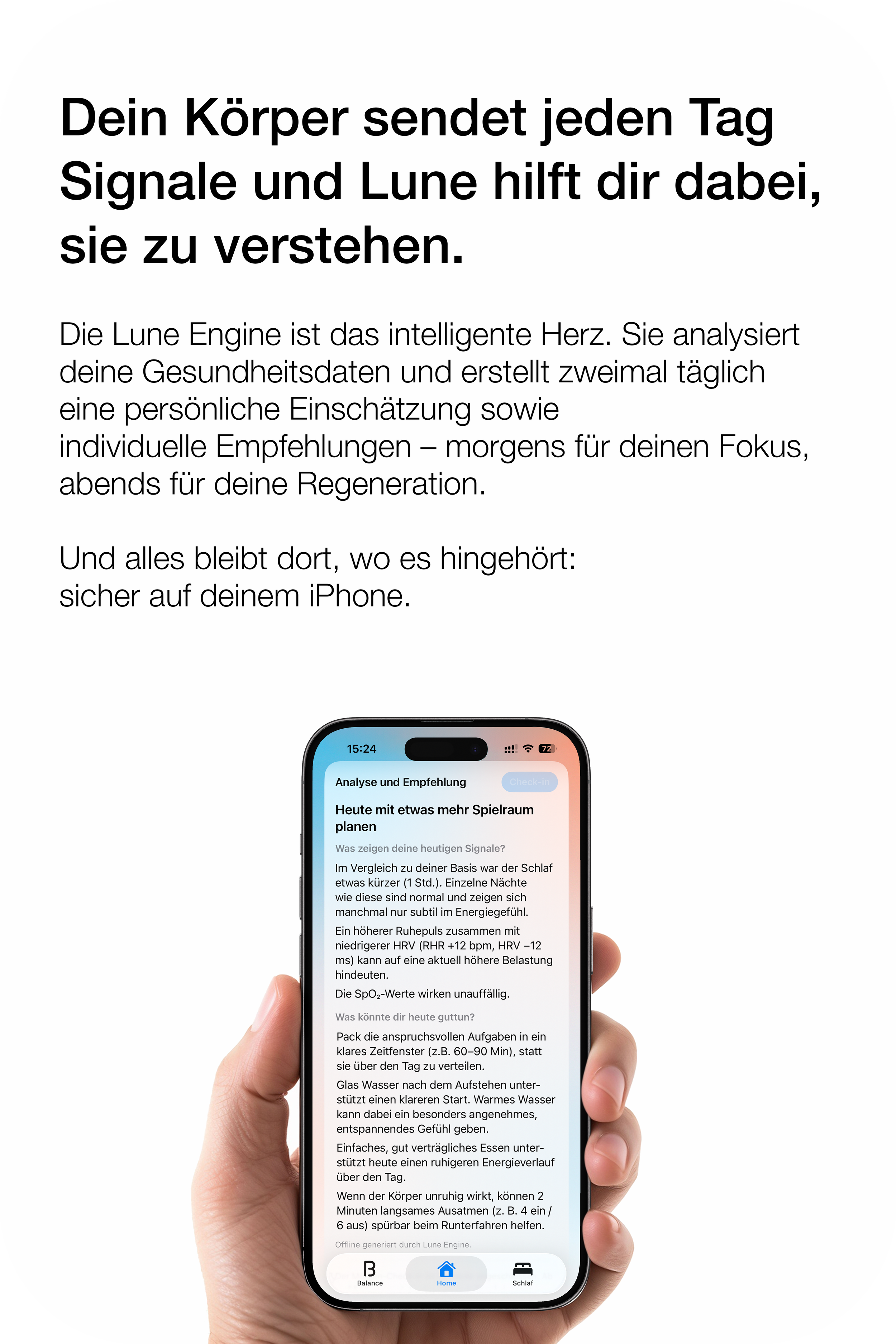 Lune verwandelt Gesundheitswerte in echte Orientierung – fundierte Analyse, persönliche Tipps, vollständig offline.